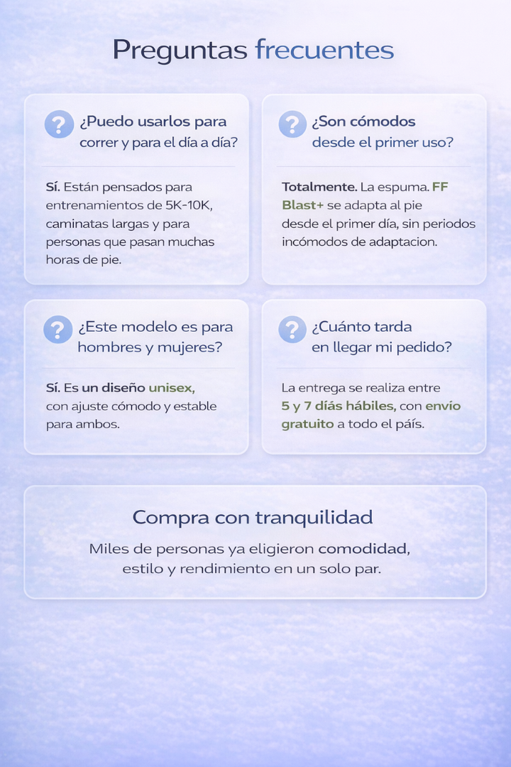Camino bastante por mi trabajo y siempre terminaba cansado. Con estos tenis siento menos impacto en las rodillas.